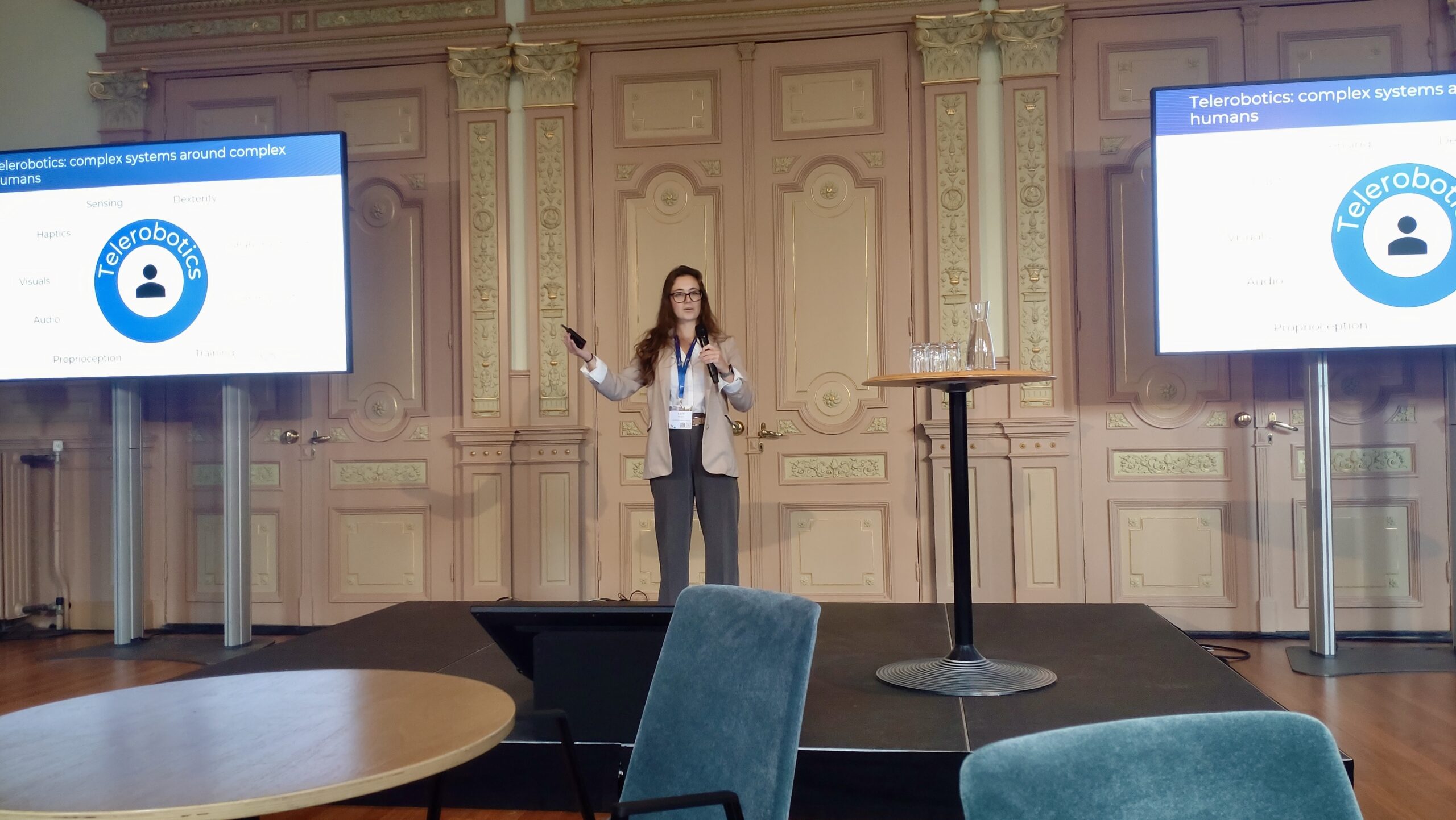 Laura McGann, a Ph.D. student in Human Fusions Institute director Dustin Tyler’s lab, recently had a paper accepted for presentation and publication for the first time in her Ph.D. career. She presented her paper, “Multimodal Analysis of Sensorimotor Learning in an Immersive, Neural Haptic Human-in-the-Loop Interface to Inform Training and Design,” at the second annual IEEE Telepresence Conference in the Netherlands. This conference is a key event for the growing community of academics, researchers, and professionals in telepresence and teleoperation, making McGann’s participation and presentation a significant opportunity. Her paper will be published in IEEE Xplore in Spring 2026, further contributing to the field.